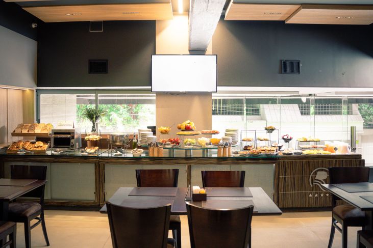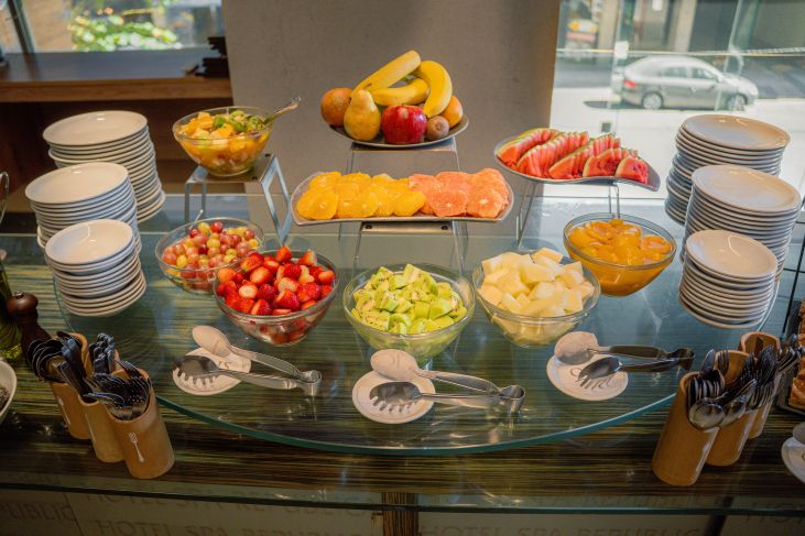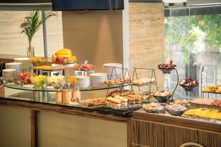 Disfrute de nuestro completo desayuno buffet, incluido en su estadía. Cuenta con amplia variedad de infusiones como café, té, leche, leche chocolatada, jugo de naranja, y yogures.
